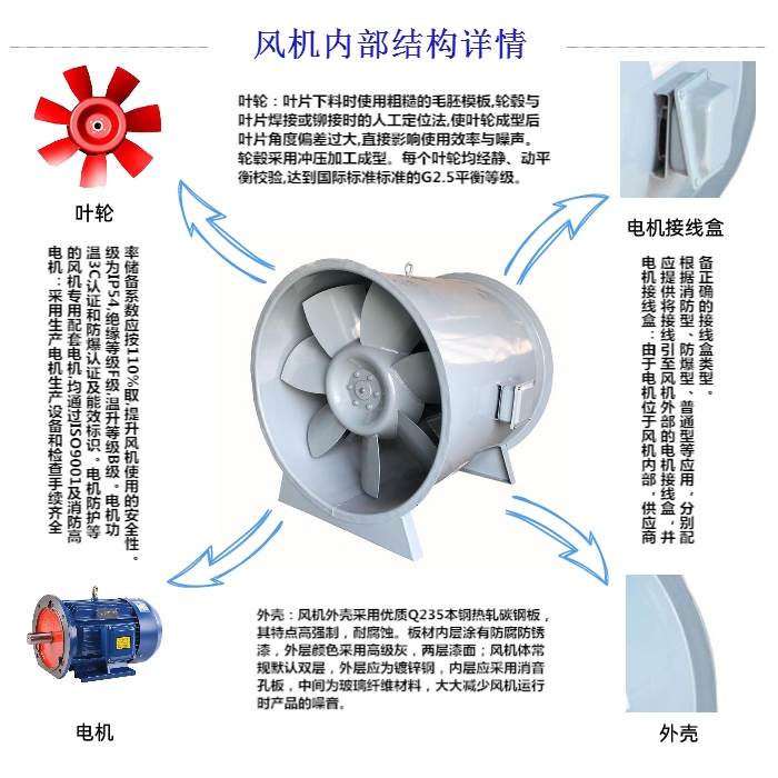 屋頂消防排煙風機試車時人數不少于兩人,一人控制電源,一人觀察風機運轉情況,發現異常現象立即停機檢查;首先檢查旋轉方向是否正確;風機過程中,應檢查各相運轉電流是否平衡,電流是否超過額定電流;若有不正常現象,應停止檢查。運轉五分鐘后,屋頂消防排煙風機停機檢查風機是否有異常現象,確認無異常現象再開機運轉。